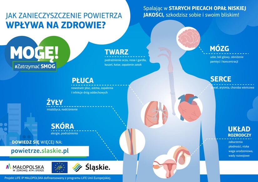 Każdego roku smog przyczynia się do śmierci ponad 44 tys. Polaków. Oddychanie nim naraża człowieka między innymi na: choroby układu oddechowego, układu krążenia, układu krwionośnego oraz osłabienie układu odpornościowego.