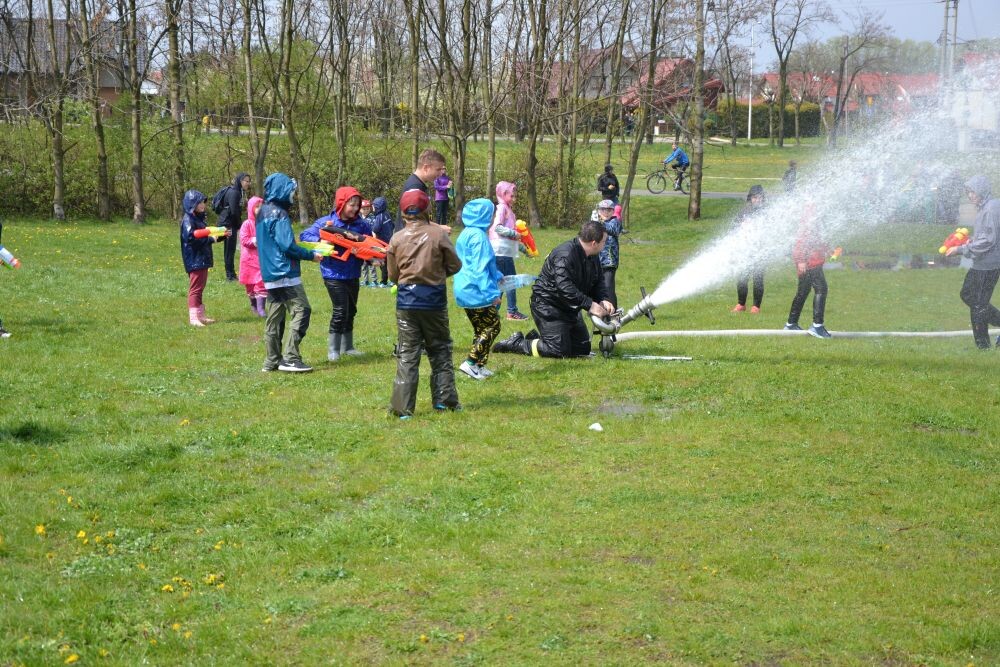 Bitwa wodna odbyła się w Lany Poniedziałek w samo południe. Choć dawniej w ramach tradycji śmigusa-dyngusa to kawalerowie polewali panny, to w dzisiejszych czasach dobra zabawa nie zważa na płeć ani ani wiek. Wodą oblewali się wszyscy i nie pomogły nawet wodoodporne ubrania.