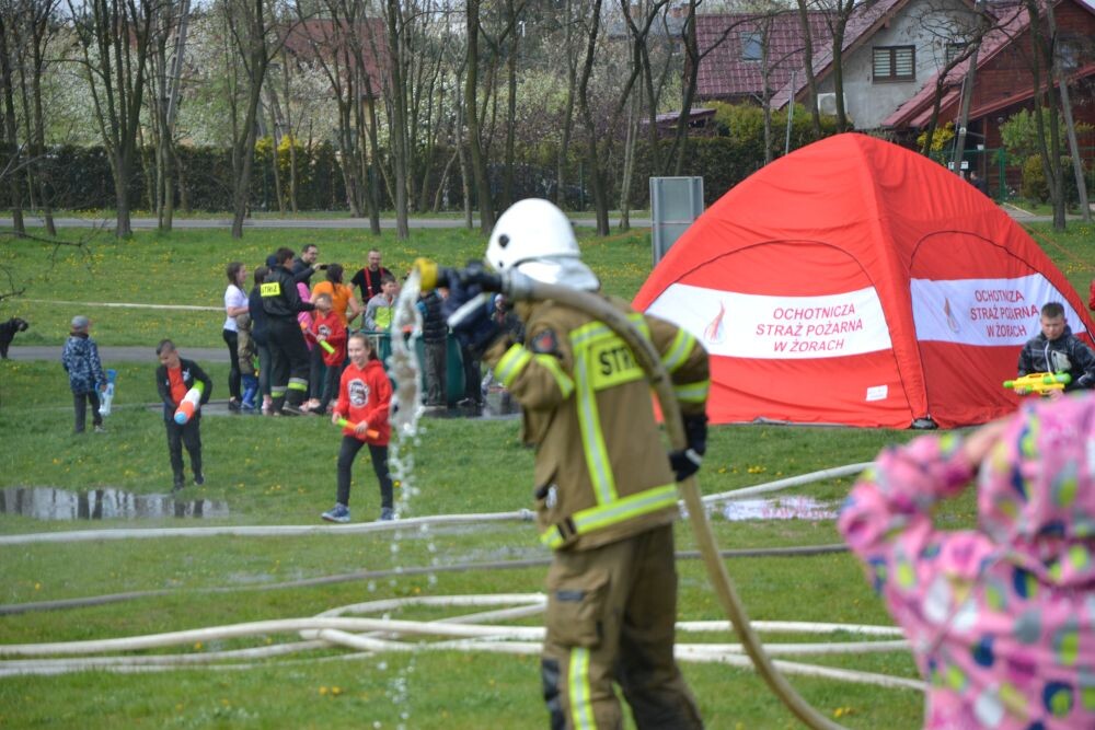 Ochotnicza Straż Pożarna zapewniła ciężki sprzęt! W bitwie wodnej w żorskim parku Cegielnia brały udział wszystkie pokolenia i nikt nie skończył zabawy z suchym ubraniem. Na szczęście słońce nas wysuszyło.
