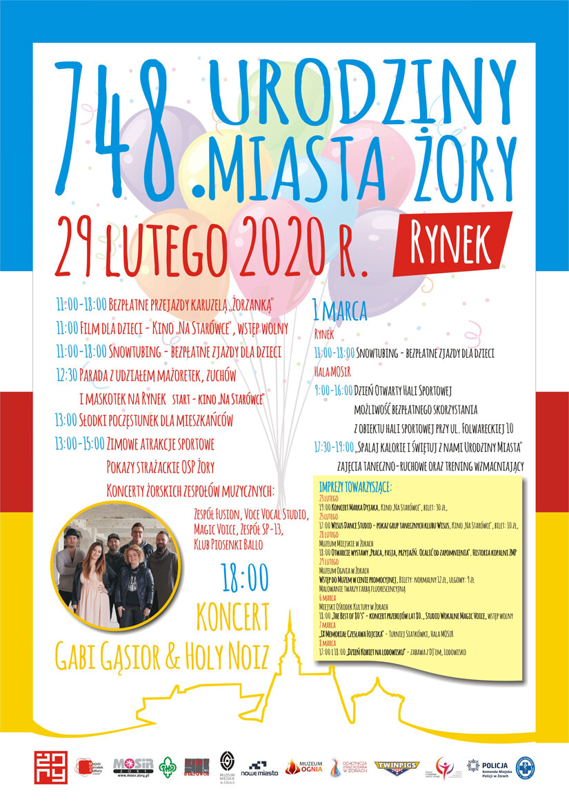 Główną atrakcją Urodzin Miasta będzie koncert gwiazd muzyki gospel, czyli zespołu Gabi Gąsior & Holy Noiz. Koncert rozpocznie się o godz. 18:00 na żorskim Rynku.