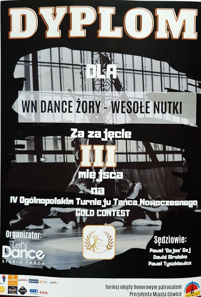 6 marca gr. młodzieżowa WN Dance z zespołu Wesołe Nutki reprezentowała nasze miasto na IV Ogólnopolskim Turnieju Tańca Nowoczesnego GOLD CONTEST 2021 edycja on-line w Gliwicach.