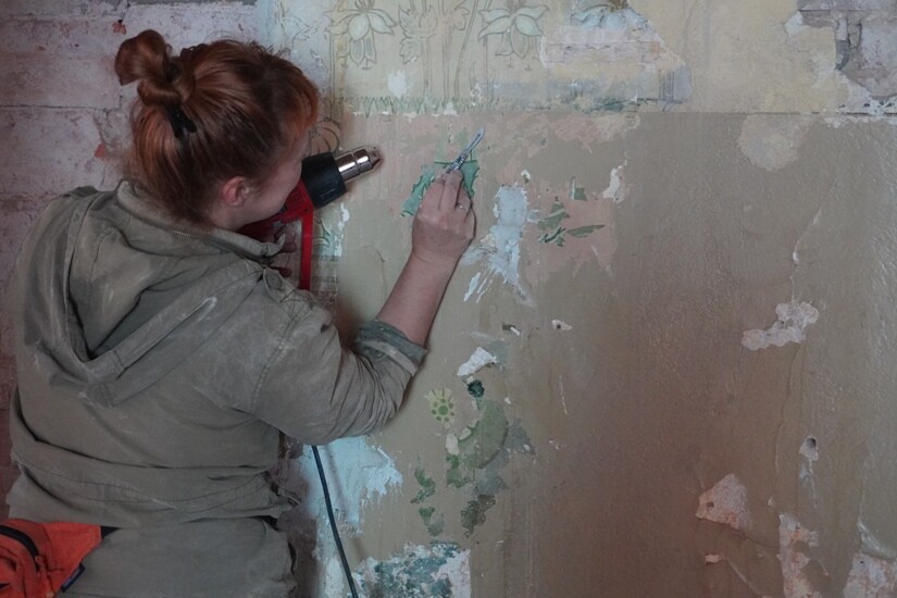 Zakończono badania architektoniczne elewacji oraz wnętrz budynku, a także usuwanie warstw tynku. Ściągnięto wzory profili gzymsów i według wzornika wykonywany jest gzyms okopowy. Śląski Wojewódzki Konserwator Zabytków zaakceptował w całości projekty balustrady klatki schodowej oraz projekty kominków. Wnętrza budynku będą zaaranżowane tak, aby zachować stylistykę zabytkowych polichromii, odkrytych podczas wcześniejszych prac. Na ścianach i sufitach pałacu będą wykonywane szkice polichromii według wzorników secesyjnych.