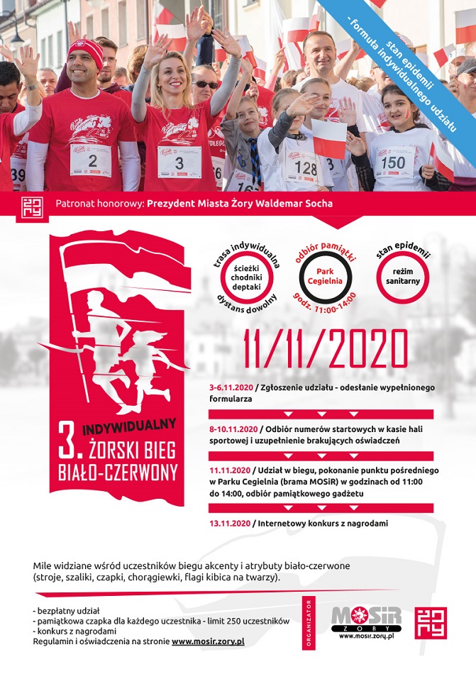 MOSiR Żory odwołuje 3. Indywidualny Bieg Biało-Czerwony zaplanowany na 11 listopada 2020 roku.