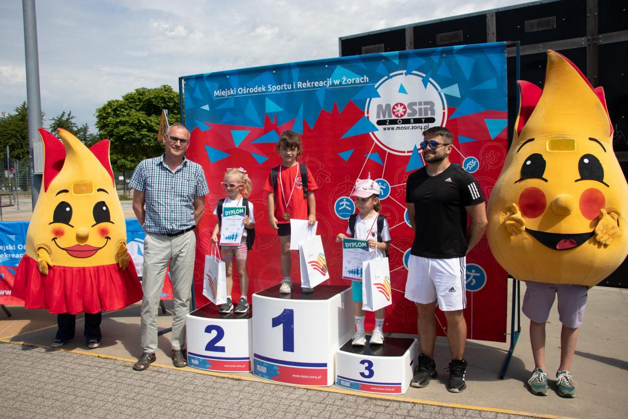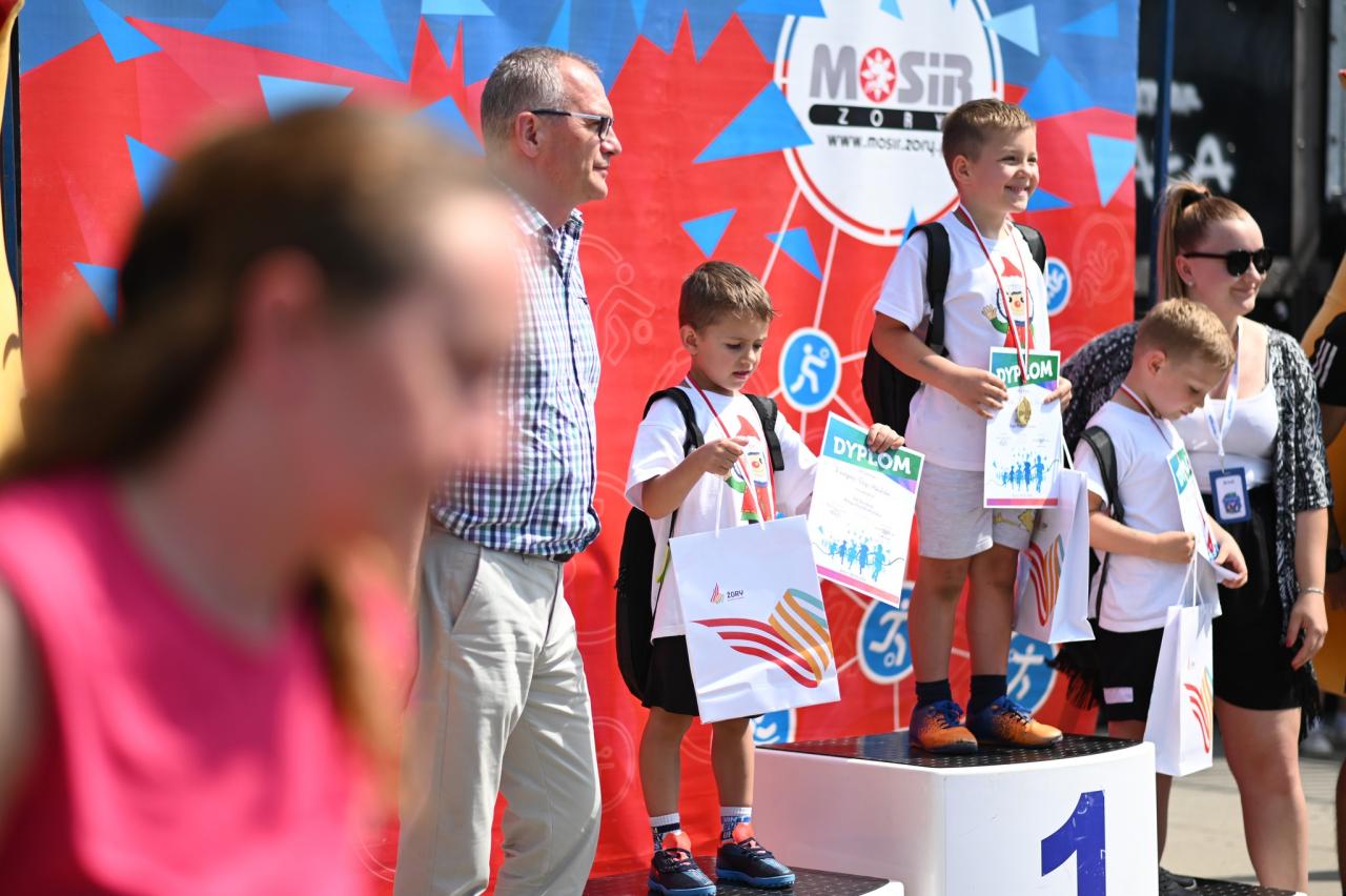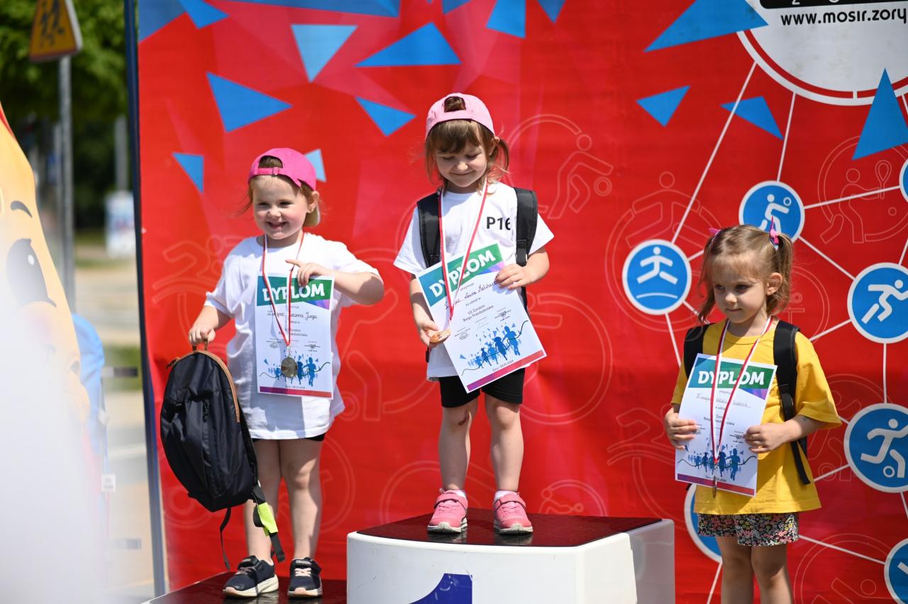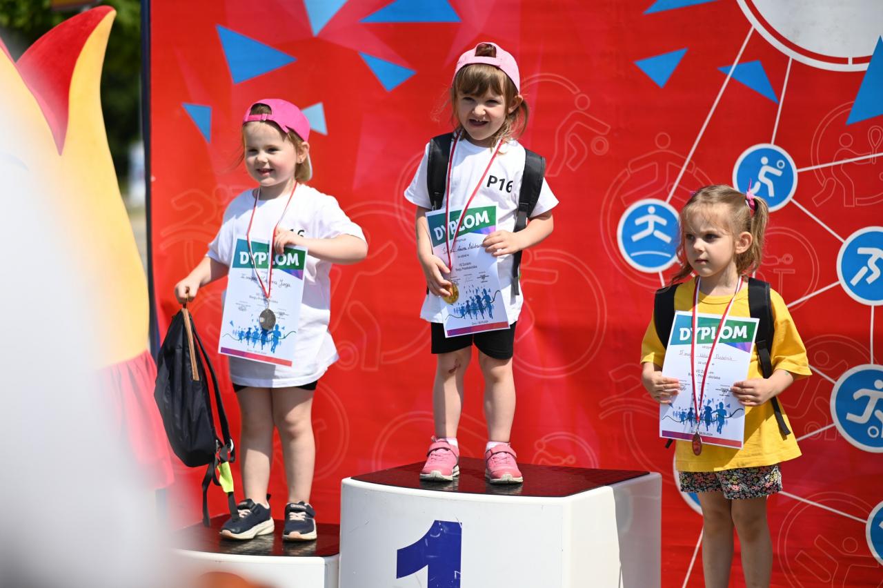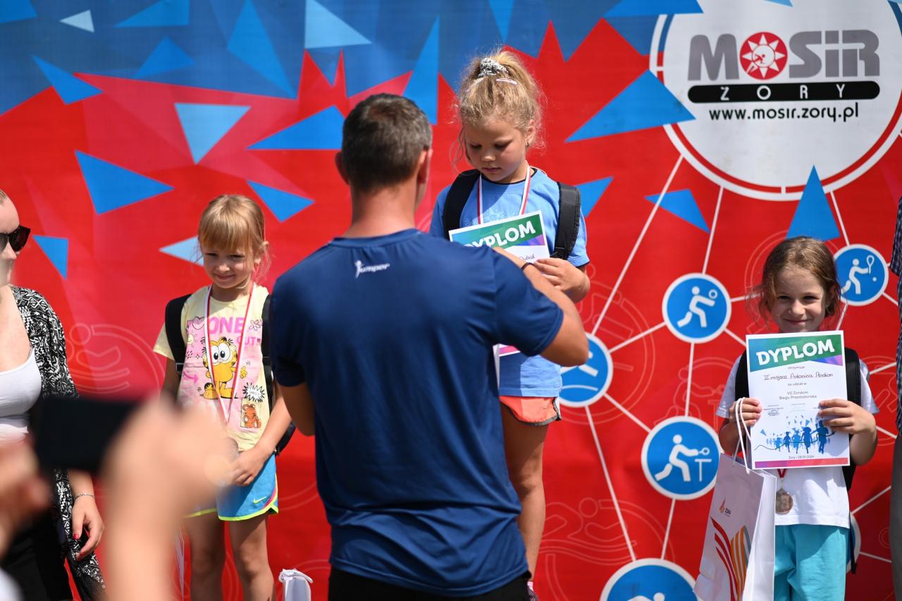 Przedszkolaki świetnie sobie radziły, humory dopisywały, a rodzice, dziadkowie i opiekunowie nagradzali swoje pociechy brawami, towarzysząc im niejednokrotnie podczas biegu. Najlepsi biegacze stanęli na podium otrzymując medal, dyplom i nagrody rzeczowe ufundowane przez Decathlon Żory, a także upominki przekazane przez Urząd Miasta Żory. Przyznano też nagrody w klasyfikacji drużynowej przedszkoli wręczając puchary i dyplomy.