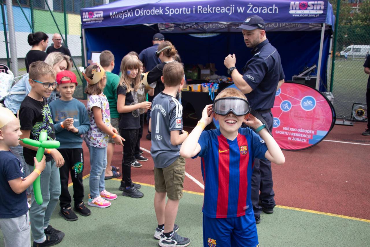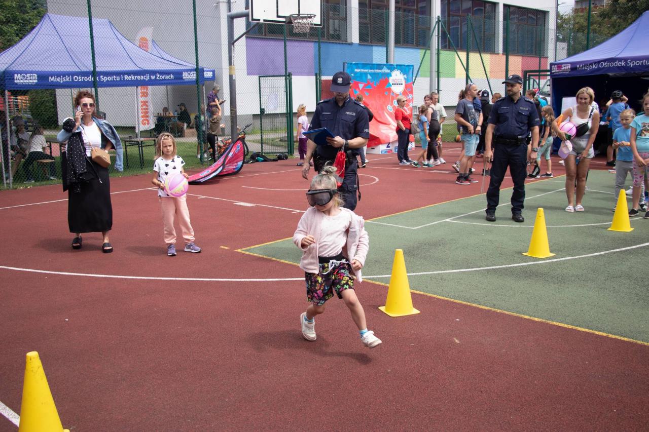 Funkcjonariusze Komendy Miejskiej Policji w Żorach przeprowadzili krótką „pogawędkę” z dziećmi oraz zorganizowali konkurencję sportową z użyciem alkogogli, co było pouczającym doświadczeniem dla uczestników. W trakcie imprezy można było również skorzystać z darmowej wody oraz otrzymać nagrody rzeczowe i karty rabatowe ufundowane przez „Burger King”.