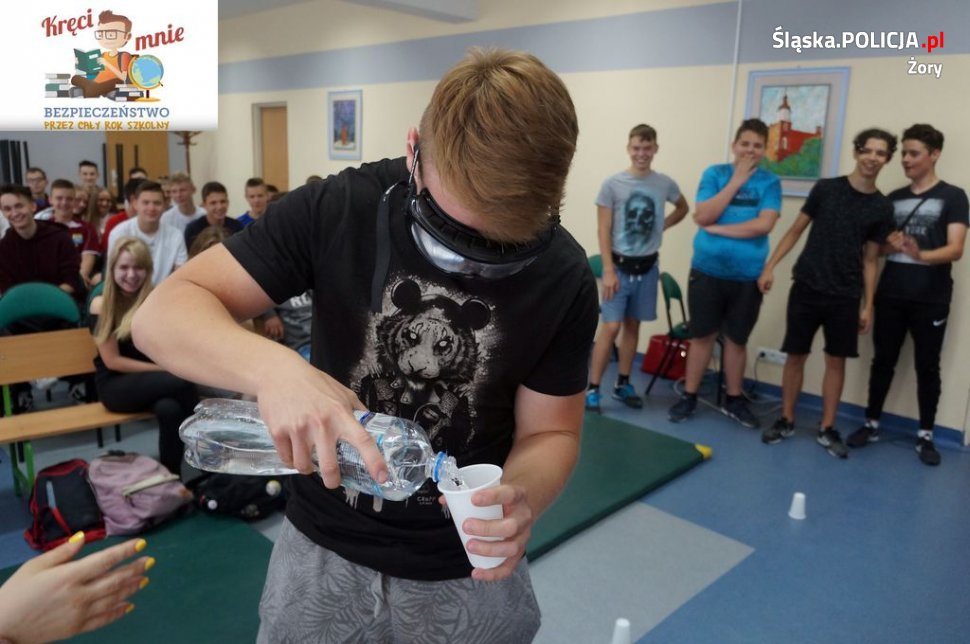 Niecodzienna lekcja rozpoczęła się od emisji krótkiego filmu poruszającego problematykę pijanych kierowców na drodze. Następnie głos zabrała policjantka, która opowiedziała młodzieży o zagrożeniach związanych ze spożywaniem alkoholu i wyjaśniła jak może wpływać na zachowanie młodego człowieka. Ostrzegała też, że eksperymentowanie z używkami może pociągać za sobą tragiczne skutki, nie tylko w kontekście uczestnictwa w ruchu drogowym, ale i w wielu innych sytuacjach.