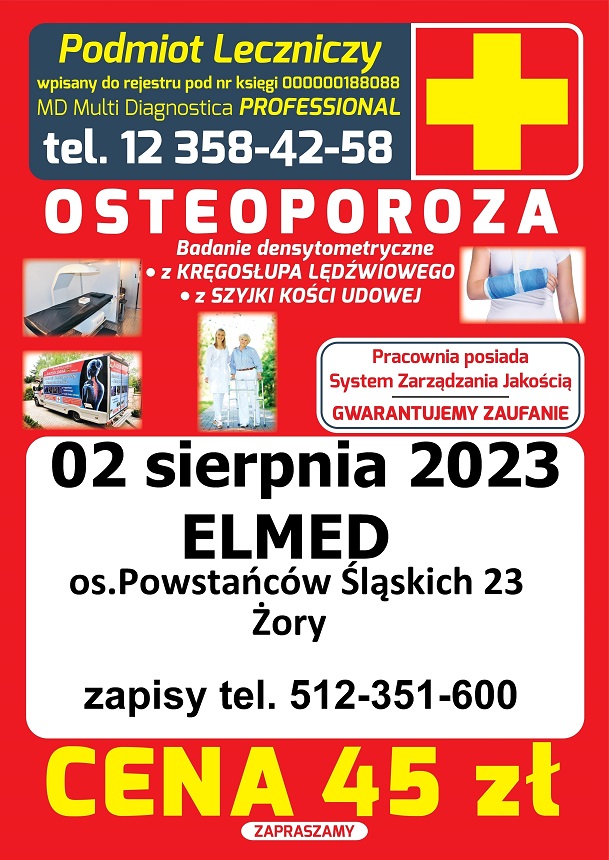 Diagnostykę przeprowadzi personel MD Multi Diagnostica z Krakowa. Nie jest wymagane skierowanie od lekarza! Cena jednego badania wynosi 45 złotych.