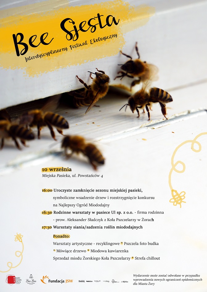 Miejski Ośrodek Kultury wraz z Fundacją JSW zaprasza na imprezę pod nazwą „Bee Sjesta” – Interdyscyplinarny Festiwal Ekologiczny, który będzie okazją do: wspólnego spędzenia czasu, zabawy, edukacji ekologicznej i wzbogacenia działań toczących się wokół miejskiej pasieki: