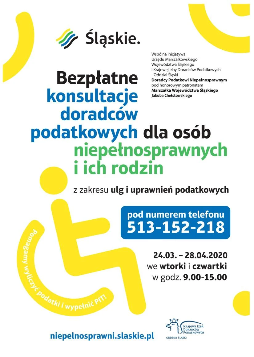 Konsultacje są wspólną inicjatywą Departamentu Zdrowia Urzędu Marszałkowskiego Województwa Śląskiego oraz Krajowej Izby Doradców Podatkowych – Oddział Śląski i zostały objęte patronatem Jakuba Chełstowskiego – Marszałka Województwa Śląskiego.