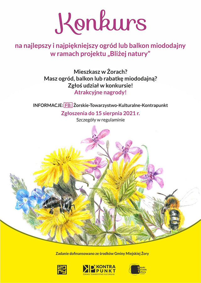 1) wypełnioną Kartę Zgłoszenia udziału w konkursie na zakątek miododajny dostępną na stronie fb. Żorskie-Towarzystwo-Kulturalne-Kontrapunkt oraz stronie mok.zory.pl wraz z załączonymi maksymalnie trzema fotografiami, przedstawiającymi najpiękniejszą przestrzeń w wybranej kategorii (I-III), stanowiącą załącznik nr 1 do niniejszego regulaminu.