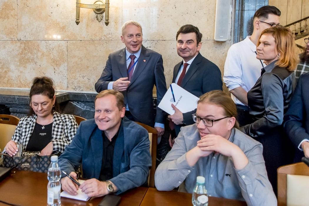Wspólne posiedzenie Parlamentarnego Zespołu ds. Wielkoskalowych Inwestycji Celu Publicznego i Wywłaszczeń oraz Doraźnej Komisji ds. projektów rządowych Sejmiku Województwa Śląskiego. Spotkanie w Sali Marmurowej Gmachu Sejmu Śląskiego związane było z nowymi założeniami budowy CPK.