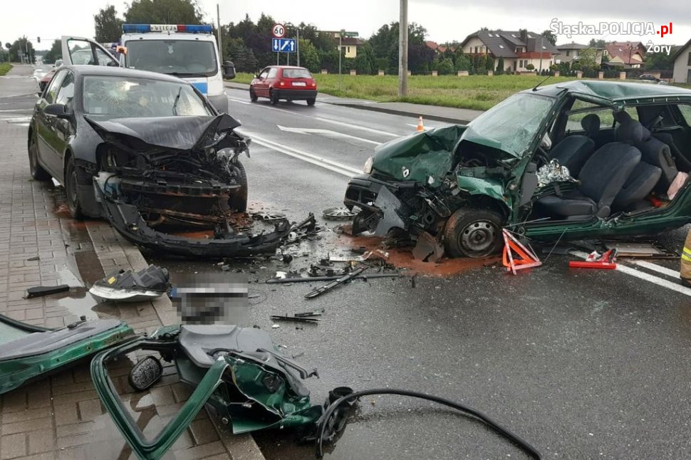 Policjanci wyjaśniają szczegółowe okoliczności wypadku drogowego, do którego doszło w sobotę na ulicy Pszczyńskiej. Jak wstępnie ustalili, 63-letni kierowca renault z powiatu rybnickiego, jadąc ulicą Pszczyńską w Żorach, z nieustalonych przyczyn nagle zjechał na przeciwny pas jezdni i czołowo zderzył się z volkswagenem, kierowanym przez 62-letnią mieszkankę powiatu pszczyńskiego.