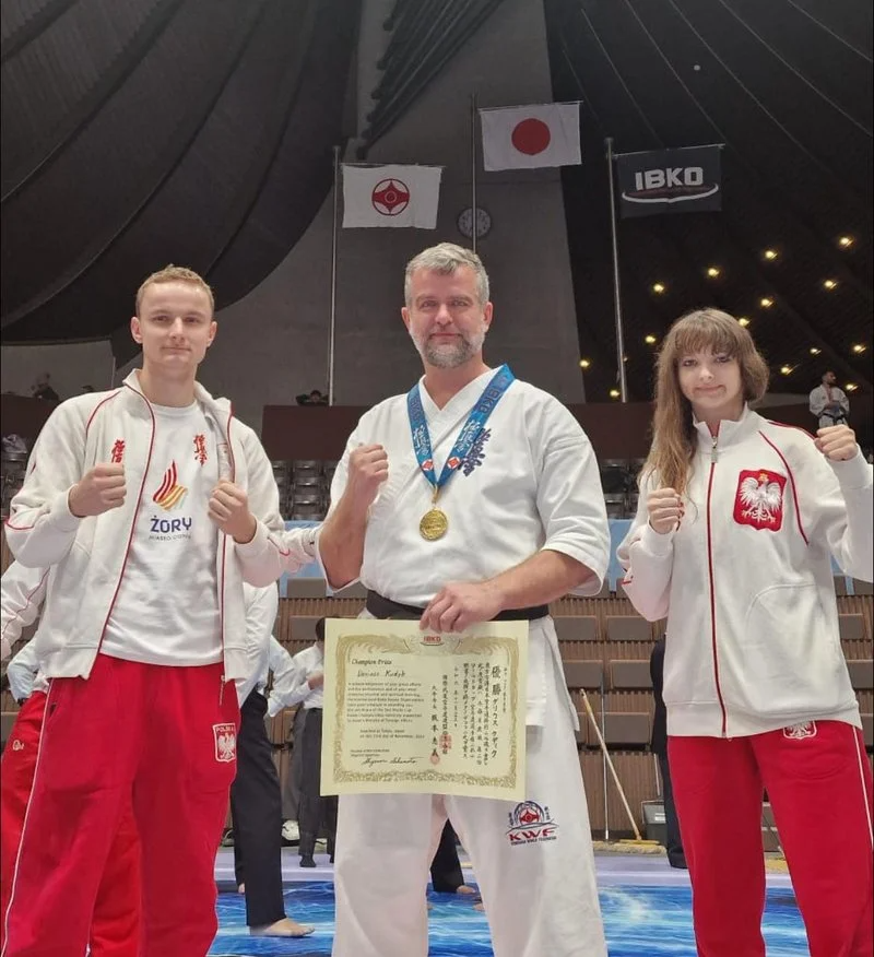Fenomenalną formę zaprezentował w Japonii Dariusz Kudyk, który po trzech zwycięskich walkach zdobył złoty medal w kumite! Rywalizacja była niezwykle zacięta. W pierwszej walce żorzanin pokonał zawodnika z Pakistanu, w drugiej po dogrywce zawodnika gospodarzy, a w finale po dwóch dodatkowych rundach zawodnika z Iranu.