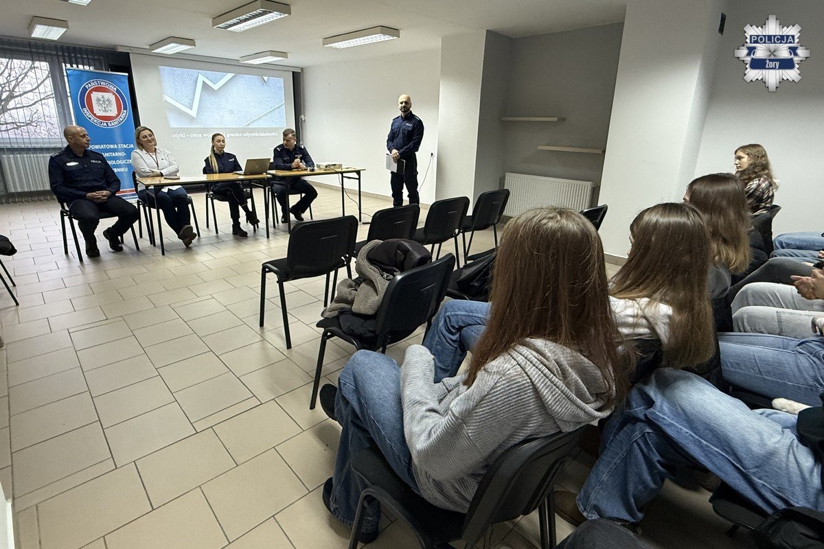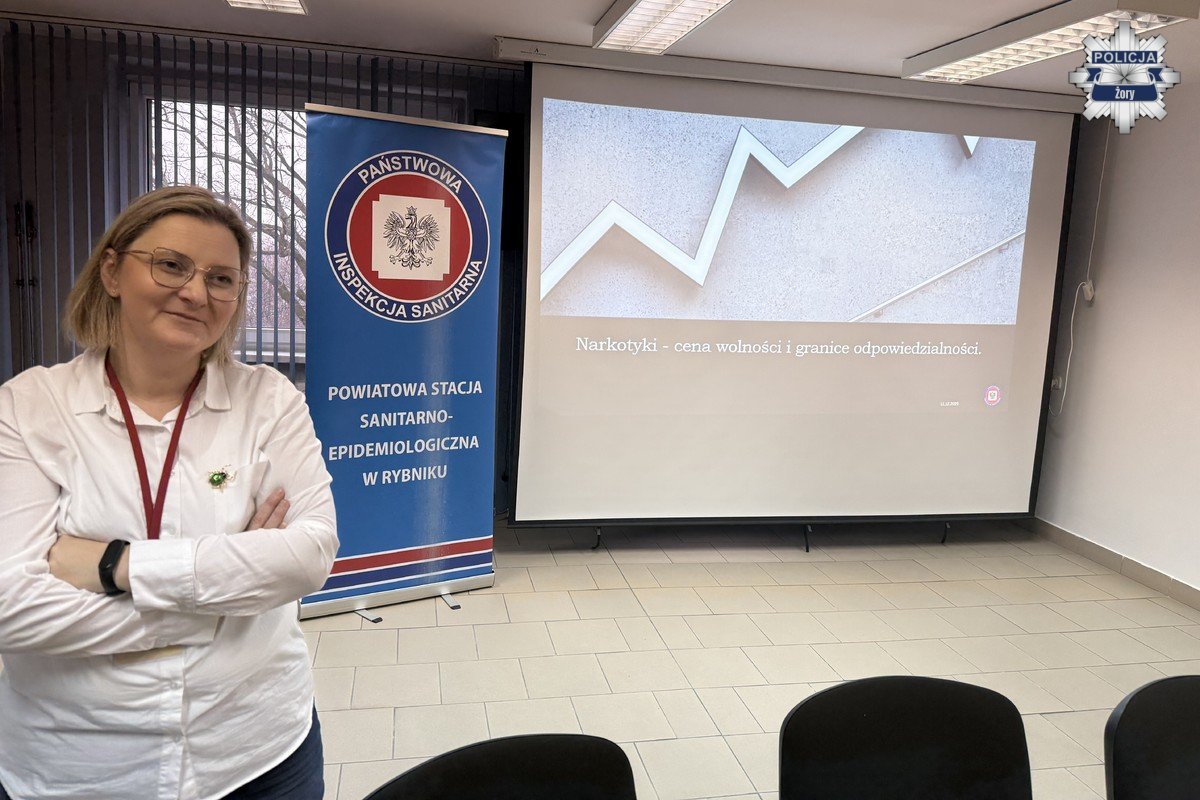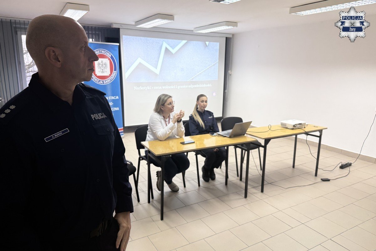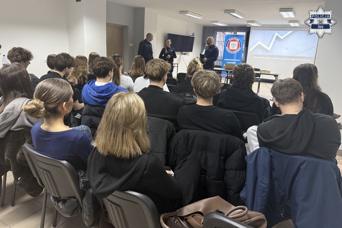 W Komendzie Miejskiej Policji w Żorach odbyła się debata poświęcona zagrożeniom związanym z narkotykami oraz konsekwencjom prawnym ich używania. W spotkaniu uczestniczyli uczniowie klas mundurowych Zespołu Szkół nr 3 im. Zbigniewa Herberta, którzy mieli okazję skonfrontować swoją wiedzę z doświadczeniem specjalistów. Debata stanowiła ważny element profilaktyki i miała skłonić młodzież do świadomych, odpowiedzialnych wyborów.