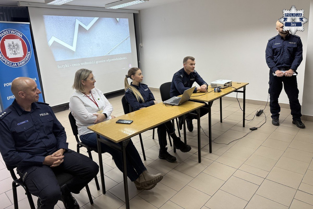Debata „Narkotyki – cena wolności i granice odpowiedzialności” w żorskiej komendzie