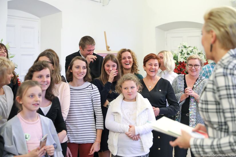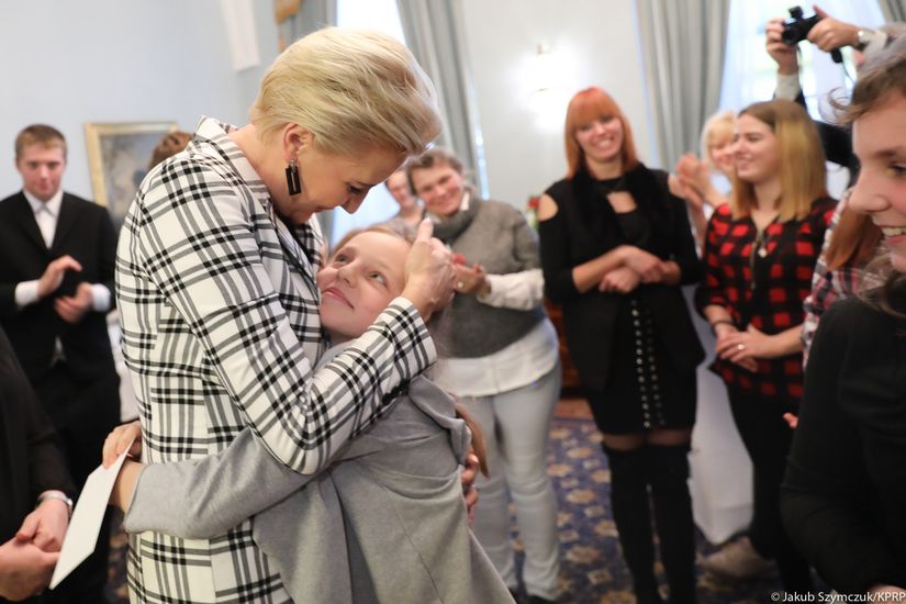 Grupa dzieci osieroconych pozostających pod opieką Stowarzyszenia Przyjaciół Chorych „Hospicjum im. Jana Pawła II” w środę (14.11) spotkała się z Agatą Kornhauser-Dudą – Pierwszą Damą. Młodzież wraz z opiekunami, wśród których była Prezes Stowarzyszenia Dorota Domańska oraz wolontariusze hospicjum, miała możliwość zwiedzenia Pałacu Prezydenckiego w towarzystwie Pierwszej Damy oraz dowiedzenia się, jak wyglądają przygotowania do wizyt głów państw w Polsce oraz wyjazdy Pary Prezydenckiej zagranicę.