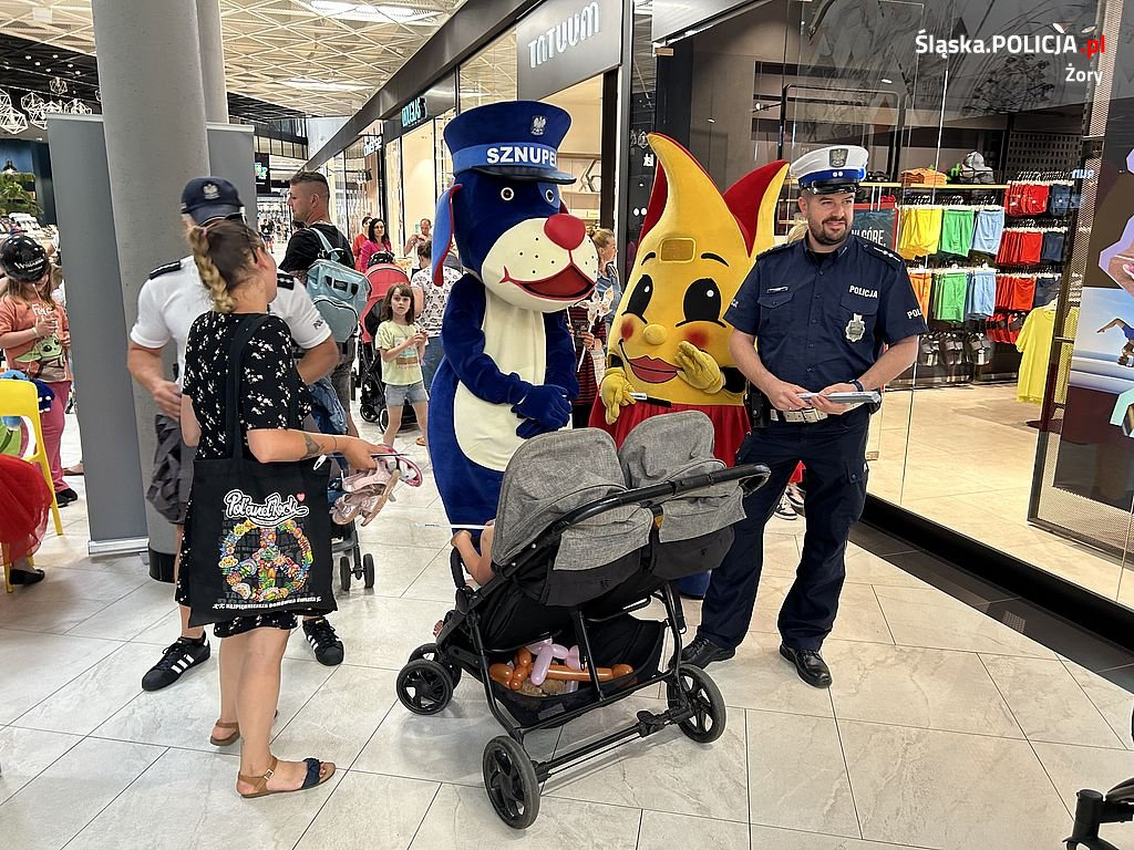 W miniony czwartek na terenie żorskiej galerii handlowej, w ramach obchodów „Dnia dziecka” spotkać można było maskotkę Śląskiej Policji – Sznupka, a także żorskich policjantów. Ten międzynarodowy dzień był również okazją do rozmowy o bezpieczeństwie i oznakowania jednośladów. W trakcie całej akcji można było otrzymać odblaskowe torby i opaski, dzięki którym niechronieni uczestnicy ruchu drogowego są lepiej widoczni na drodze.