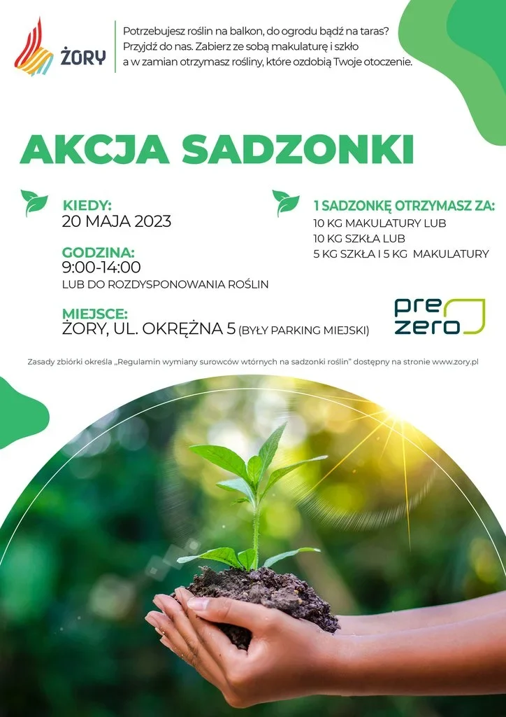 Już wkrótce będzie można otrzymać darmowe sadzonki podczas akcji organizowanej przez Urząd Miasta w Żorach. Makulatura i szkło to surowce, które będzie można wymienić na sadzonki kwiatów, krzewów i drzew. Ekologiczna akcja skierowana jest do mieszkańców Żor i odbędzie się w sobotę, 20 maja w godzinach od 9:00 do 14:00 na terenie byłego parkingu, przy Punkcie Selektywnej Zbiórki Odpadów Komunalnych (PSZOK), zlokalizowanego w Żorach przy ul. Okrężnej 5.