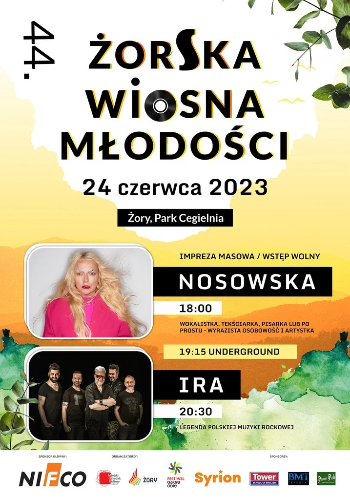 Drugi dzień zabawy w Parku Cegielnia to 44. Żorska Wiosna Młodości. Zaczniemy ją od prawdziwej muzycznej petardy – w sobotę 24 czerwca, o godz. 18:00 wystąpi Nosowska! Wokalistka, tekściarka, pisarka i po prostu jedna z największych polskich artystek oczaruje publiczność swoim głosem. Tuż po niej wystąpi świetny rockowy zespół z naszego regionu, czyli grupa Underground. Natomiast o godz. 20:30 rozpocznie się koncert legendy polskiego rocka, grupy IRA, świętującej 35-lecie działalności artystycznej!