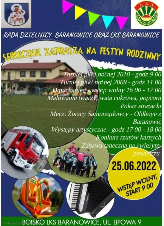 Rada Dzielnicy Baranowice oraz Ludowy Klub Sportowy Baranowice zapraszają na Festyn Rodzinny z mnóstwem atrakcji!