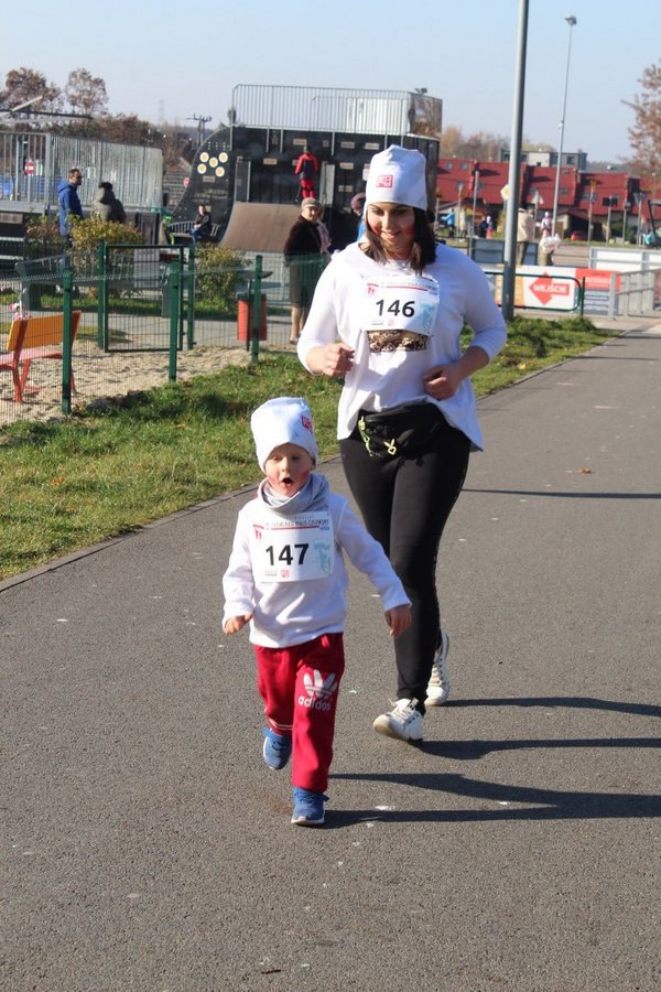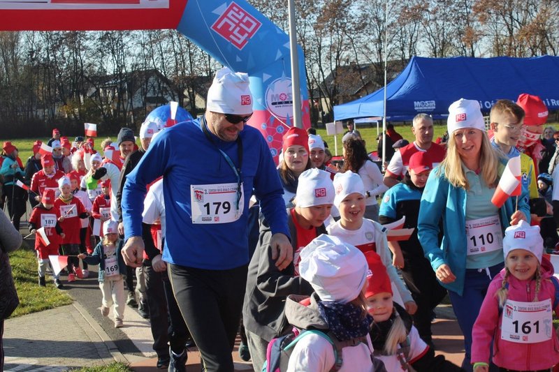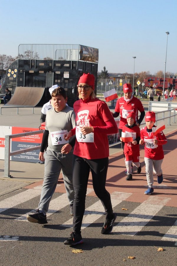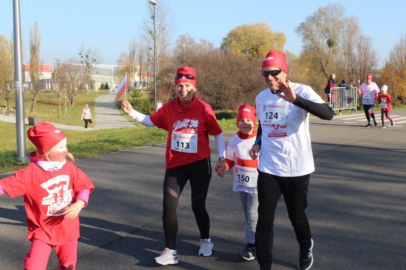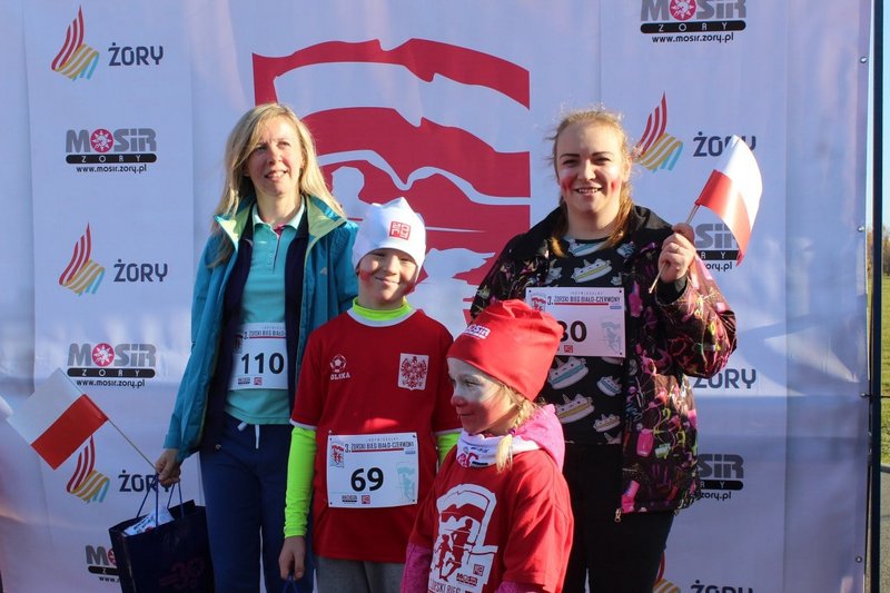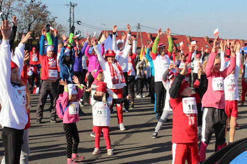 Tuż przed startem odbyła się kilkuminutowa rozgrzewka. W Parku Cegielnia, bo tam w tym roku zorganizowano bieg, na sportowo świętowały całe rodziny – dzieci i dorośli, którzy w taki właśnie sposób celebrowali Narodowe Święto Niepodległości. Po biegu odbyło się losowanie numerów startowych z konkursem, w którym do wygrania były trzy bony do sklepu sportowego ufundowane przez partnera imprezy Decathlon Żory oraz nagroda główna – tablet, który trafił w ręce Natana Psoty.