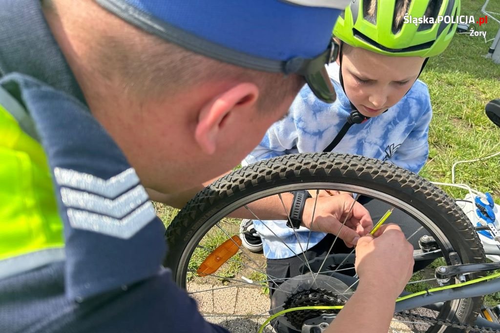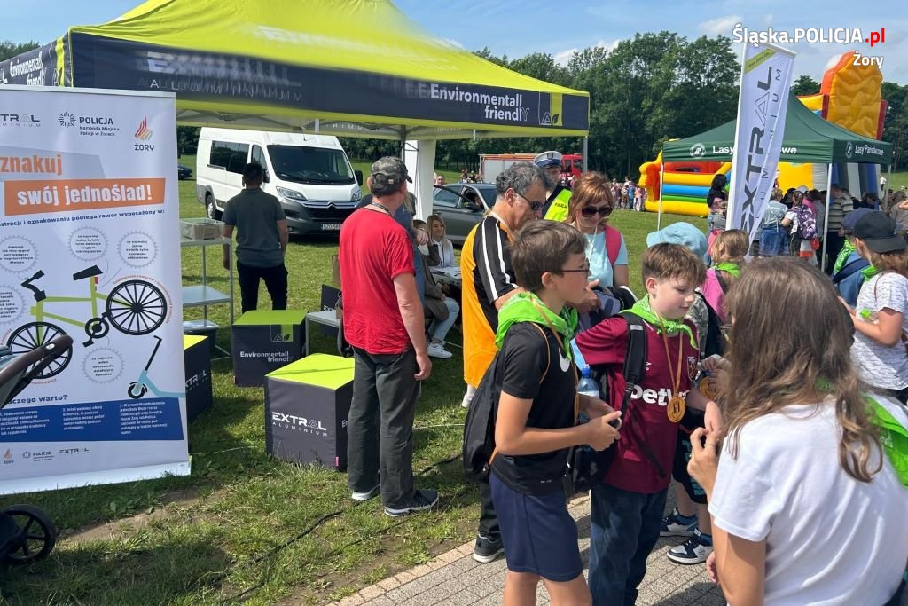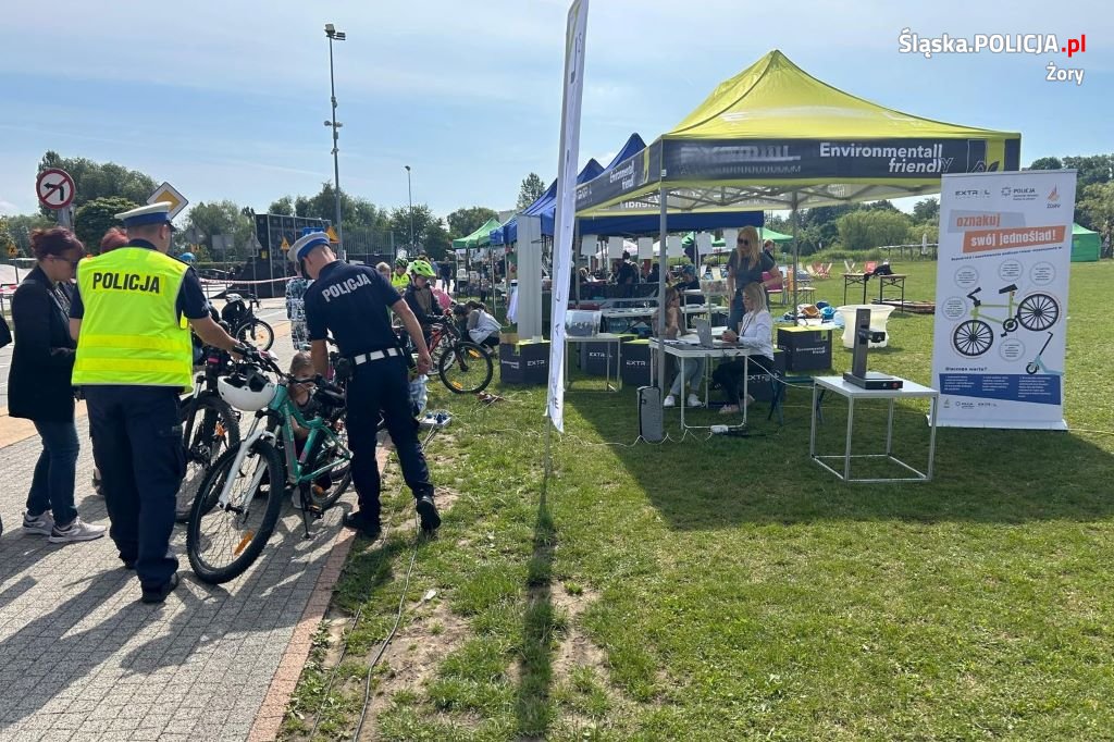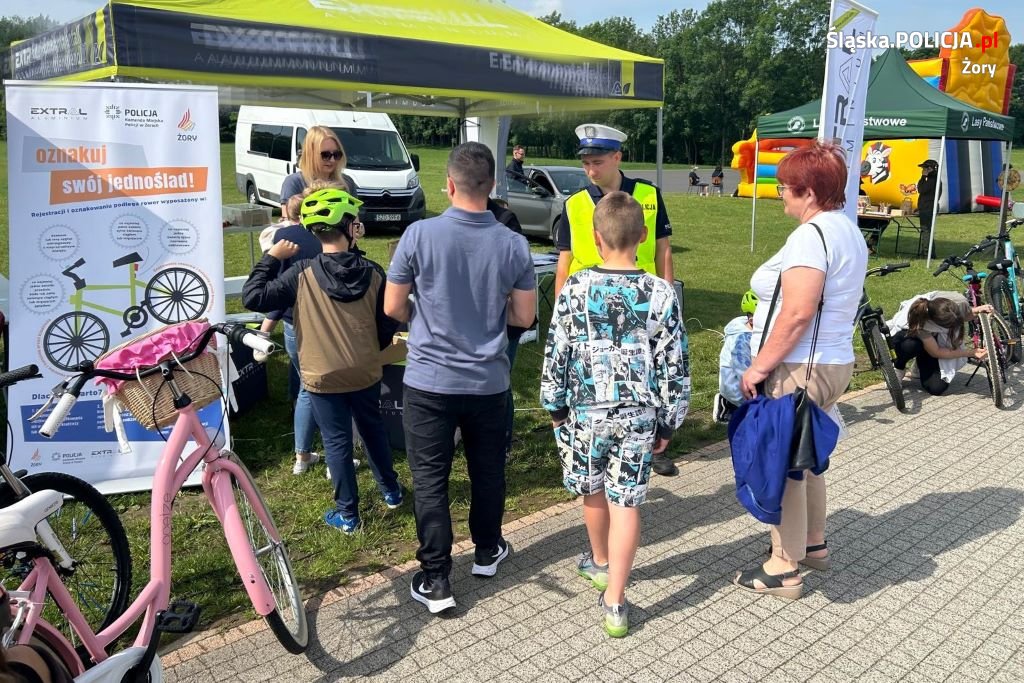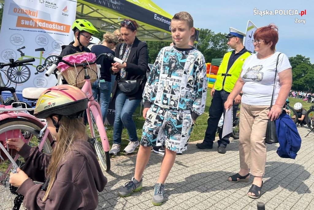 Uczestnicy i mieszkańcy mogli wraz z policjantami oznakować swój rower, a także doposażyć rower w dzwonek i odblaskowe elementy. Jednocześnie na pobliskim Miasteczku Ruchu Drogowego policjanci ruchu drogowego przeprowadzili egzamin na kartę rowerową.