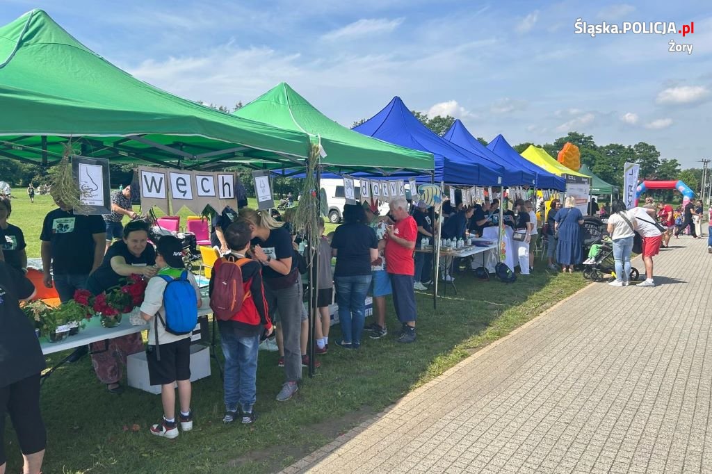 Do inicjatywy tej zaproszeni zostali żorscy stróże prawa, którzy wraz z przedstawicielami Urzędu Miasta oraz lokalnej firmy przygotowali stanowisko profilaktyczne. Prócz licznych atrakcji przygotowanych przez organizatora, między innymi ścieżki sensorycznej, podczas której uczestnicy mogli doznawać wrażeń za pośrednictwem bodźców smakowych, słuchowych i wzrokowych, żorscy stróże prawa przypominali o bezpieczeństwie.
