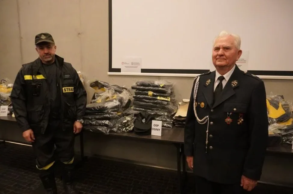 - OSP Osiny: 5 kompletów butów gumowych, 3 komplety rękawic technicznych, 10 kompletów 4-częściowych ubrań koszarowych.