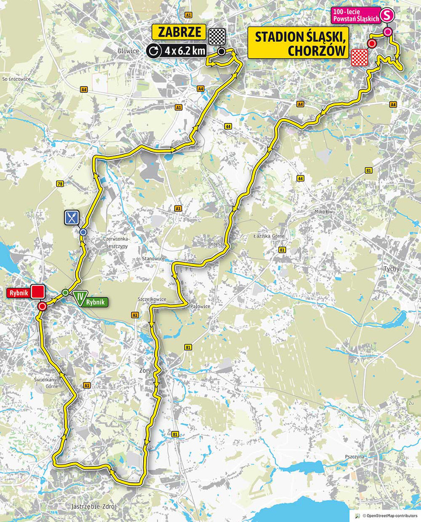 Peleton wjedzie do naszego miasta od strony Szczejkowic około godziny 16:10, zmierzając ul. Szczejkowicką, a następnie ulicami: Rybnicką, Męczenników Oświęcimskich, al. Wojska Polskiego, al. Niepodległości i al. Jana Pawła II, ul. Okrężną i Główną w kierunku Krzyżowic.