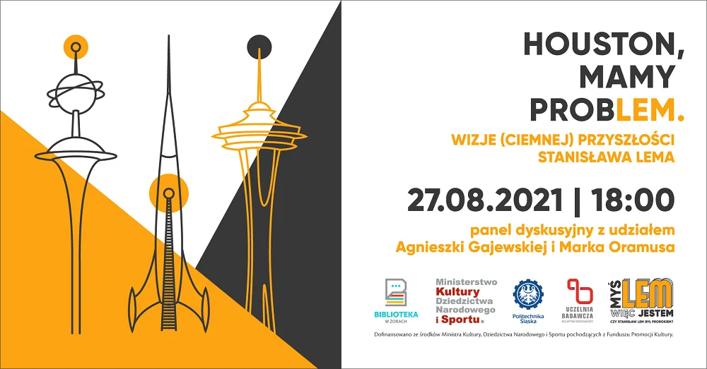 W piątek 27 sierpnia br. o godz. 18:00 w żorskiej bibliotece odbędzie się panel dyskusyjny HOUSTON, MAMY PROBLEM. WIZJE (CIEMNEJ) PRZYSZŁOŚCI STANISŁAWA LEMA z udziałem AGNIESZKI GAJEWSKIEJ oraz MARKA ORAMUSA prowadzony przez FILIPA KOBIELĘ.