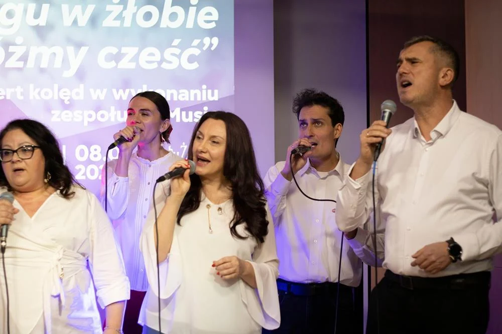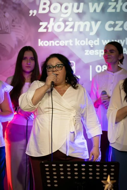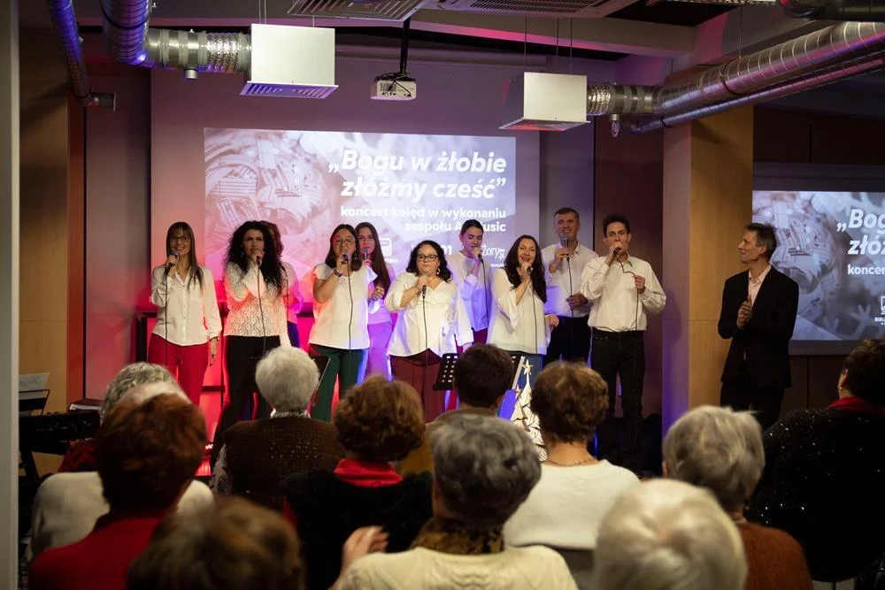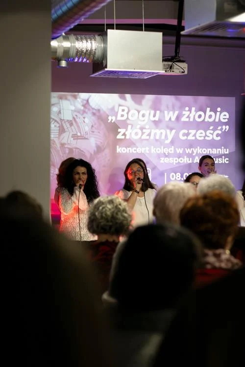Od pierwszych dźwięków w sali panowała wspólna radość i ciepła atmosfera. Publiczność chętnie włączała się w śpiew, a znane i lubiane kolędy wywołały uśmiechy na twarzach zarówno słuchaczy, jak i wykonawców. Wieczór pełen dobrej energii i wspólnego kolędowania na długo pozostanie w pamięci uczestników.