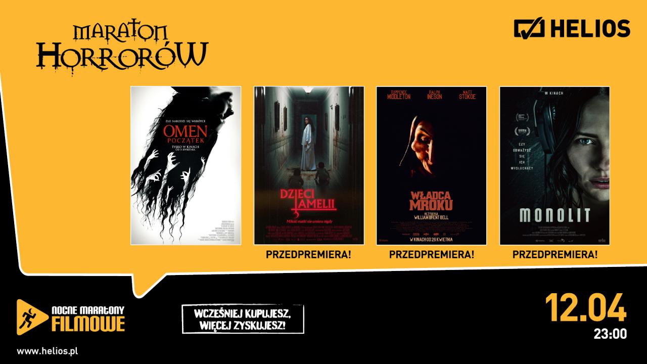Na 12 kwietnia zaplanowano najbliższą odsłonę cyklu Nocne Maratony Filmowe. Tym razem będzie to wydarzenie dla miłośników filmów grozy, czyli Maraton Horrorów. W ramach wielogodzinnych projekcji kinomani będą mogli zobaczyć „Omen: Początek” oraz trzy porywające przedpremiery!