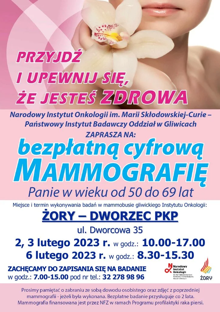Na początku lutego po raz pierwszy w tym roku do naszego miasta przyjedzie specjalistyczny mammobus Narodowego Instytutu Onkologii im. M. Skłodowskiej-Curie w Gliwicach. Kobiety w wieku 50-69 lat będą w nim mogły bezpłatnie wykonać cyfrową mammografię.