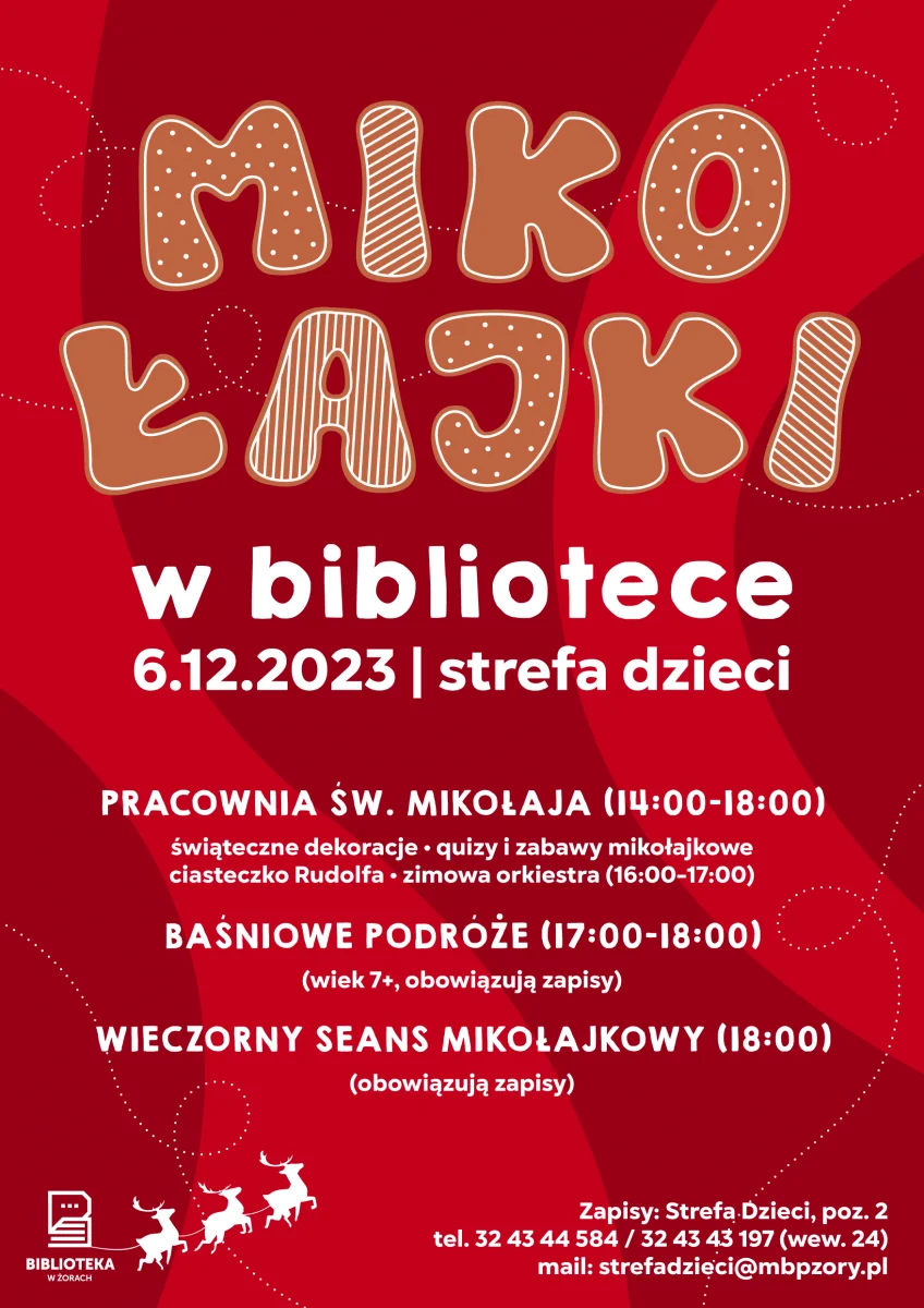 Coraz bliżej święta, coraz bliżej święta. W mieście stoją już choinki, słychać dzwoneczki, a w powietrzu unosi się zapach pieczonych pierników, słowem czuć magię Świąt. W takiej atmosferze Miejska biblioteka Publiczna w Żorach zaprasza 6 grudnia do odwiedzenia biblioteki, gdzie Mikołaj, elfy i renifery pomogą w wyborze odpowiedniej lektury, a na najmłodszych czytelników czekać będzie pracownia świętego Mikołaja.