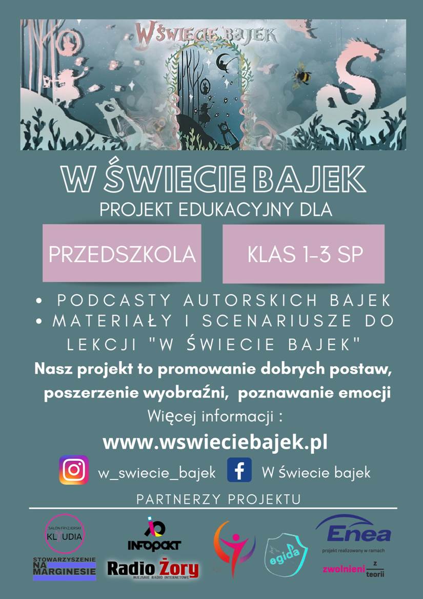 Wszystkich, rodziców i opiekunów, którzy chcieliby przeczytać bajki lub ich posłuchać, a także nauczycieli, którzy chcą skorzystać z nich podczas zajęć, zapraszamy na stronę internetową projektu www.wswieciebajek.pl. Warto podkreślić, że korzystanie za materiałów jest bezpłatne.