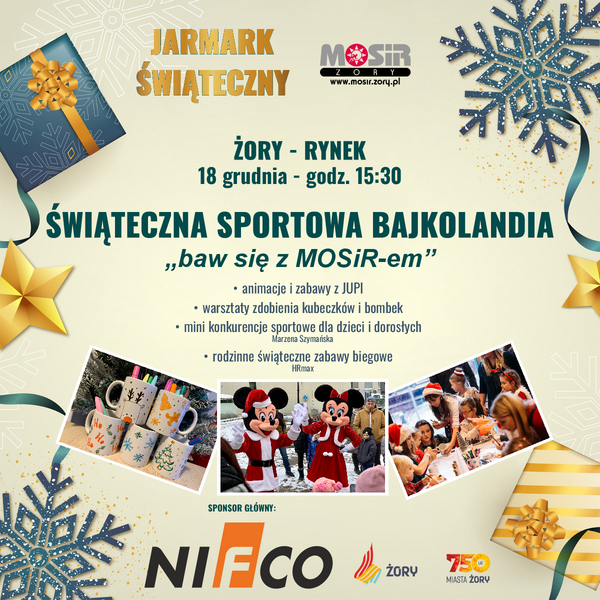 Na niedzielę 18 grudnia specjalny program pn. Świąteczna Sportowa Bajkolandia przygotował również Miejski Ośrodek Sportu i Rekreacji w Żorach, gdzie każde dziecko znajdzie dla siebie coś wyjątkowego. Wszystko rozpocznie się o godzinie 15:30: