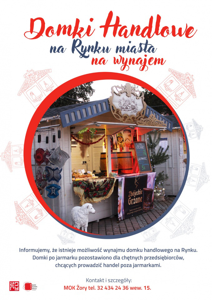 Miejski Ośrodek Kultury informuje, iż istnieje możliwość wynajmu domku handlowego na Rynku. Domki pozostawione do dyspozycji dla chętnych przedsiębiorców, chcących prowadzić handel w miesiącu grudniu.