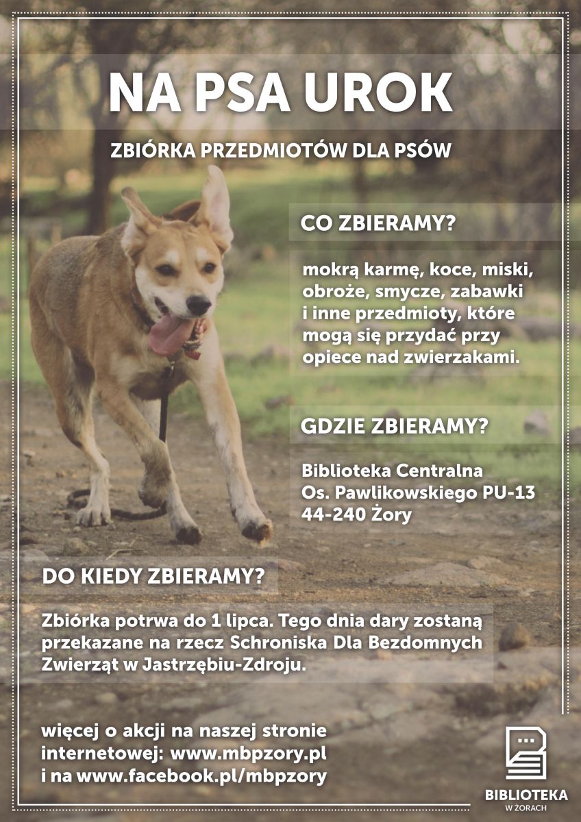 Już blisko Dzień Psa – święto naszych czworonożnych przyjaciół. MBP chce z Waszą pomocą wesprzeć pieski i przekazać im potrzebne dary. Można je zostawić w Bibliotece Centralnej na os. Pawlikowskiego do 1 lipca, a następnie zostaną one przekazane do pobliskiego Schroniska dla bezdomnych zwierząt w Jastrzębiu-Zdroju.