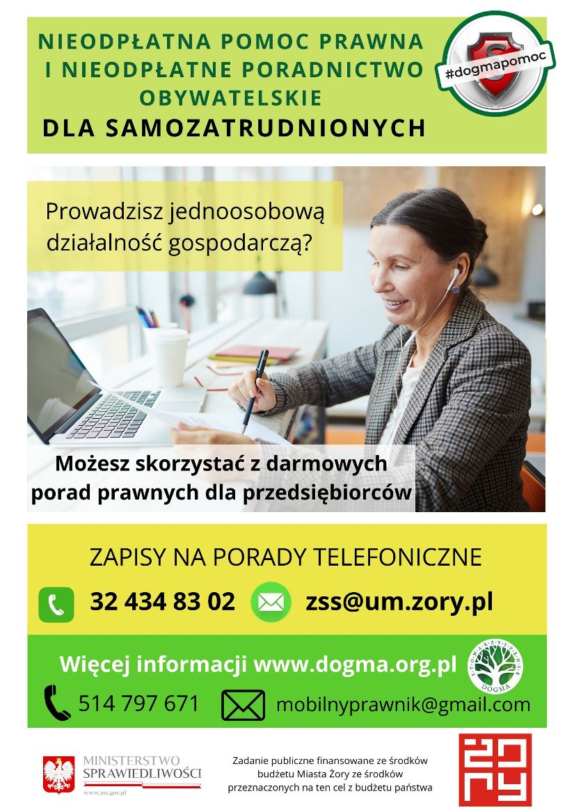 Aby skorzystać z pomocy prawników i doradców obywatelskich współpracujących ze Stowarzyszeniem DOGMA, należy zadzwonić pod numer 32/434 83 02 lub skontaktować się mailowo: [email protected].