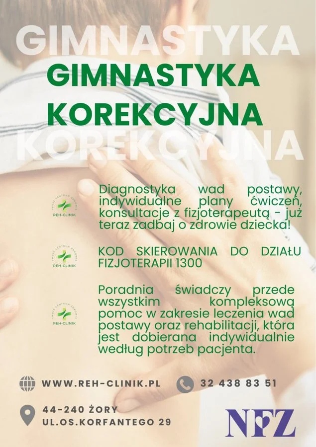 W ramach umowy z NFZ pacjenci mogą korzystać z usług fizjoterapii ambulatoryjnej całkowicie bezpłatnie. Dodatkowo, placówka prowadzi gimnastykę korekcyjną dla dzieci z wadami postawy, oferując indywidualne plany ćwiczeń mające na celu poprawę postawy i ogólnej kondycji fizycznej najmłodszych pacjentów.