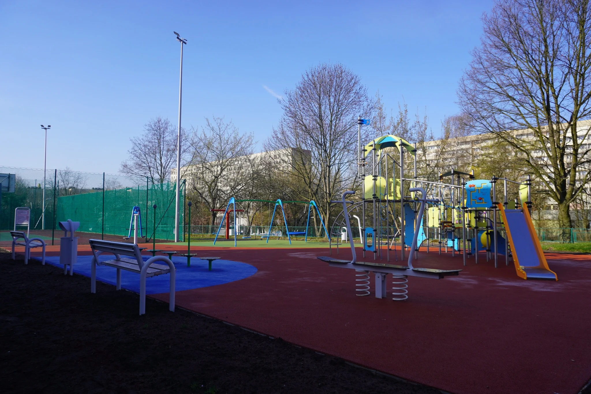 Plac zabaw, który powstał w ramach projektu zgłoszonego przez Panią Barbarę Nawrot, to prawdziwa perełka wśród przestrzeni dla dzieci. Zrewitalizowany teren obejmował rozbiórkę starych urządzeń, wymianę nawierzchni na bezpieczną miękką powierzchnię i montaż nowoczesnych atrakcji. Nowy plac jest pełen różnych urządzeń i atrakcji, które rozweselą każde dziecko.