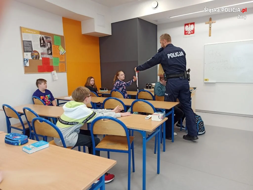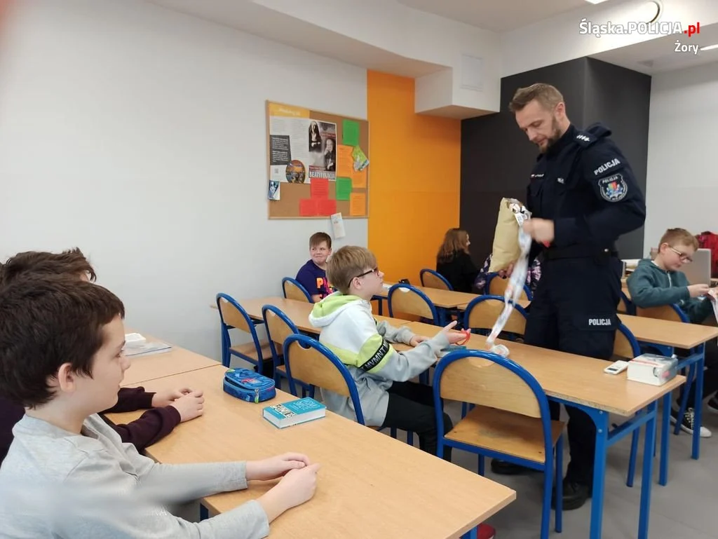 W miniony piątek żorscy mundurowi przeprowadzili prelekcję dla uczniów Zespołu Szkolno-Przedszkolnego nr 8. W trakcie spotkania przestrzegali przed uzależnieniami od gier, internetu, a także środków odurzających. Pod koniec spotkania uczestnicy otrzymali materiały promujące zdrowy styl życia przekazane przez Urząd Miasta w Żorach.
