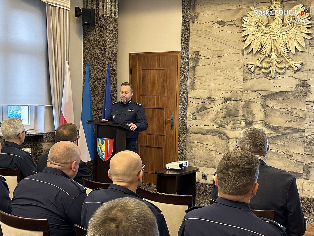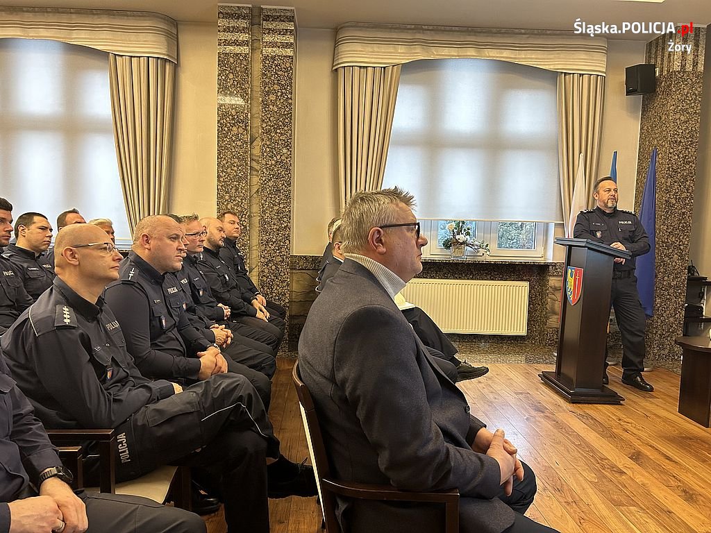 Na zakończenie wskazał również na trendy i wyzwania, jakie niesie dla mundurowych i żorskiej jednostki 2023 rok. Za rzetelną i systematyczną pracę podziękował policjantom również Komendant Miejski Policji w Żorach. Zwrócił się także z tymi słowami do zaproszonych gości, wyrażając swoją wdzięczność za wieloletnie wsparcie udzielane kierowanej przez niego jednostce.