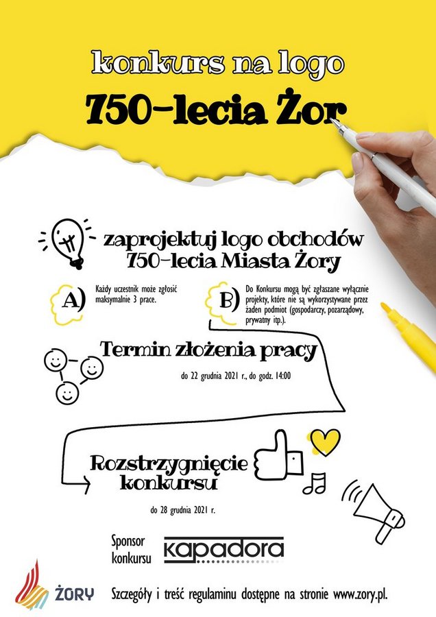 Przyszły rok będzie wyjątkowy, gdyż Miasto Żory będzie świętowało swoje 750. urodziny! Uroczyste obchody rozpoczną się w lutym i potrwają przez cały rok. Z tej okazji Urząd Miasta Żory ogłasza konkurs na zaprojektowanie logo, które będzie promowało wydarzenia związane z tym wspaniałym jubileuszem.