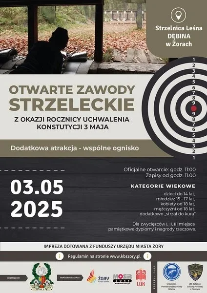 Zawody organizowane przez Kurkowe Bractwo Strzeleckie w Żorach oraz Miejski Ośrodek Sportu i Rekreacji wraz z Kołem Miejskim LOK w Żorach, odbędą się 3 maja 2025 roku na Strzelnicy Leśnej „Dębina” w Żorach. Oficjalne otwarcie zawodów zaplanowano na godzinę 11:00, równocześnie rozpocznie się rejestracja uczestników.
