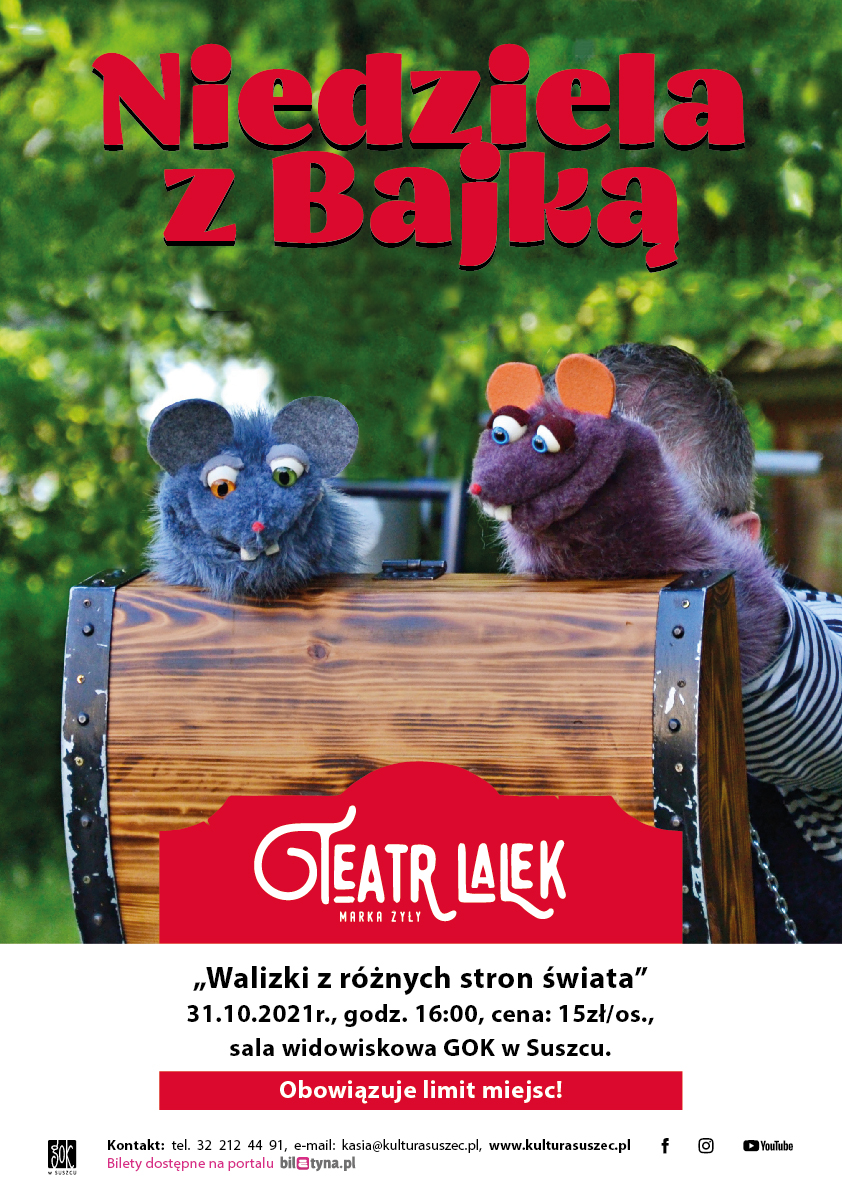 Podczas październikowego spotkania GOK Suszec zaprasza na spektakl „Walizki z różnych stron świata” w wykonaniu Teatru Lalek Marka Żyły.