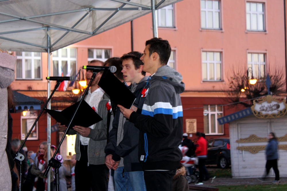 Po południu można było również wziąć udział we wspólnym śpiewaniu pieśni patriotycznych z Voce Segreto, Magic Voice i Małą Sceną Piosenki pod dyr. Dagmary Świtacz i Andrzeja Marcińca. Żorzanie licznie zgromadzili się na rynku miasta i zaśpiewali m.in. „Rotę”, „Marsza Polonia”, „My, pierwsza brygada” oraz wiele innych.