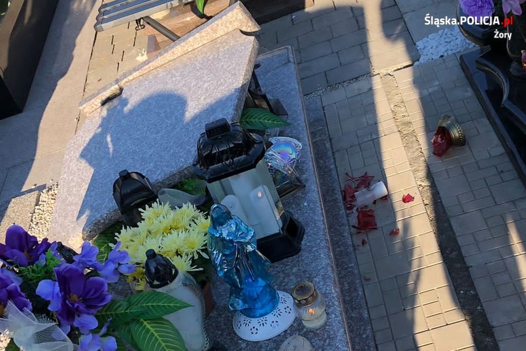 Żorscy mundurowi zatrzymali w dniu Wszystkich Świętych 51-latka, który ledwo stojąc na nogach, przyszedł na cmentarz i nie potrafiąc utrzymać równowagi, zaczął zataczać się nad grobami. W pewnym momencie stracił równowagę i przewrócił się, niszcząc dwa nagrobki. Badanie alkomatem wykazało, że mężczyzna miał w wydychanym powietrzu ponad 2,5 promila alkoholu.