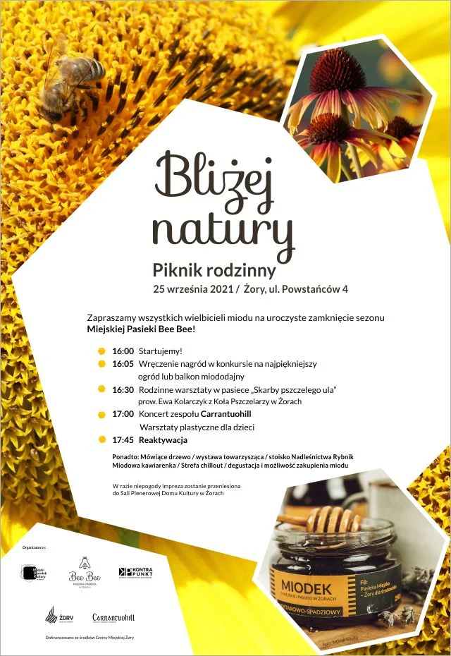 Było uroczyste otwarcie to teraz czas na uroczyste zamknięcie sezonu Miejskiej Pasieki Bee Bee. Miejski Ośrodek Kultury zaprasza w do wzięcia udziału w wydarzeniu w ramach projektu BLIŻEJ NATURY dofinansowanego przez Miasto Żory – Gminę Miejską Żory.