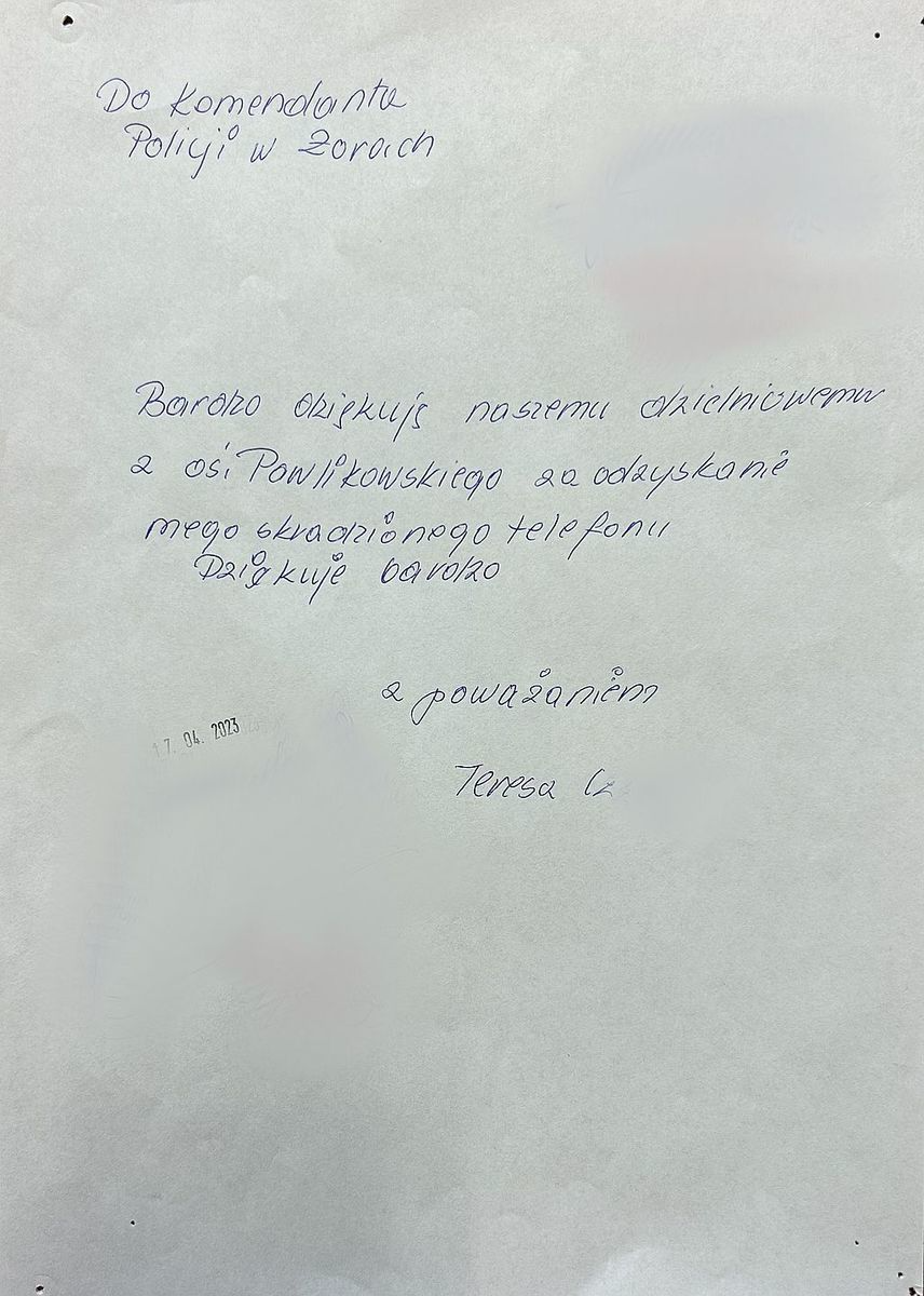 Podziękowania dla dzielnicowego. Odzyskał skradziony telefon